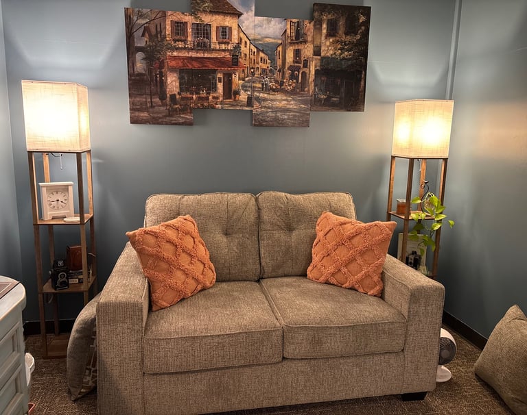 Once you're here, I want you to feel comfortable. Want to kick your shoes off, bring a drink, or eat a snack during your session? Go for it! Therapy works best when you feel safe, grounded, and at ease — so I invite you to get comfortable, and take a deep breath. You don’t need to prepare anything. Just bring a willingness to explore what brought you here, challenge old patterns, and put in consistent effort to achieve growth and change.